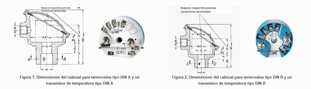 Estos transmisores están disponibles en dos tamaños, conocidos como DIN A y DIN B. Las dimensiones de cada tipo se especifican en la norma DIN 43729.