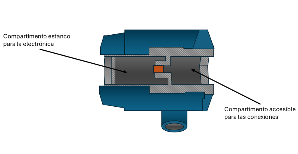 Un volumen contiene la electrónica y el otro contiene las conexiones. De esta manera, la electrónica delicada está protegida por un compartimento hermético.